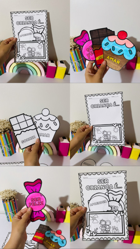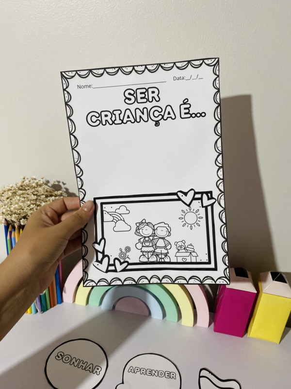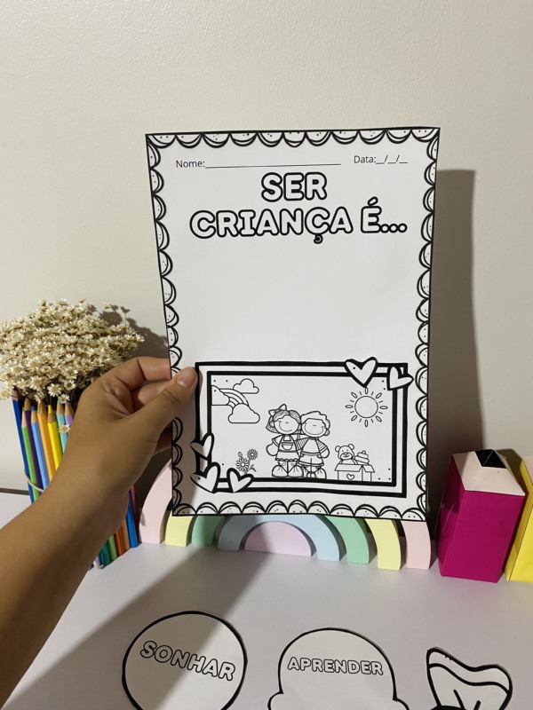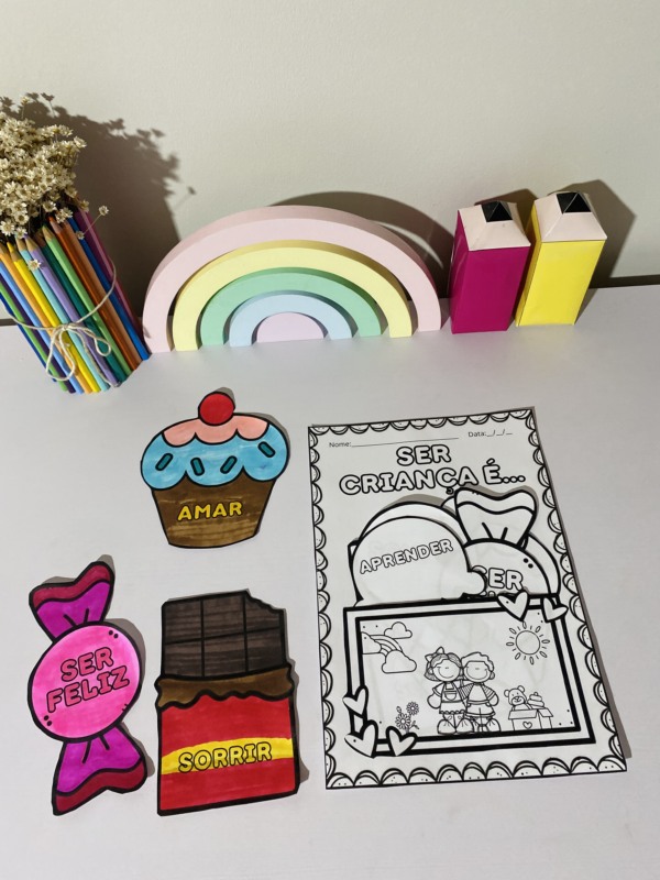Uma atividade lúdica e significativa para trabalhar com os alunos a importância de valorizar a infância. A criança poderá destacar palavras como brincar, sonhar, aprender, sorrir e amar, refletindo de forma simples e divertida sobre o que é ser criança.