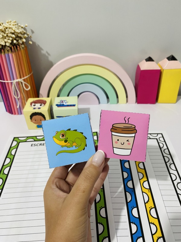 Esse material incrível acompanha 4 dados ilustrados com personagens e figuras que ajudam as crianças a criarem frases com mais facilidade e criatividade!