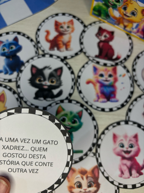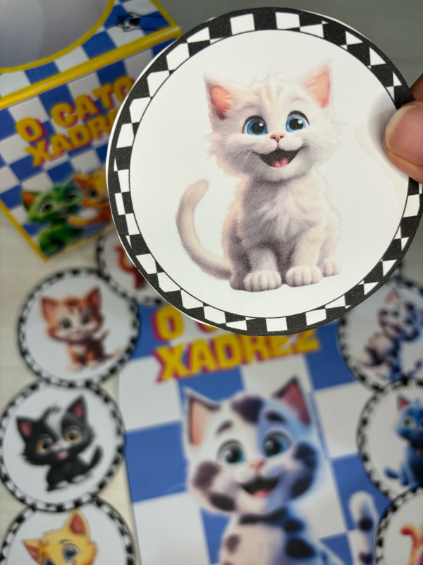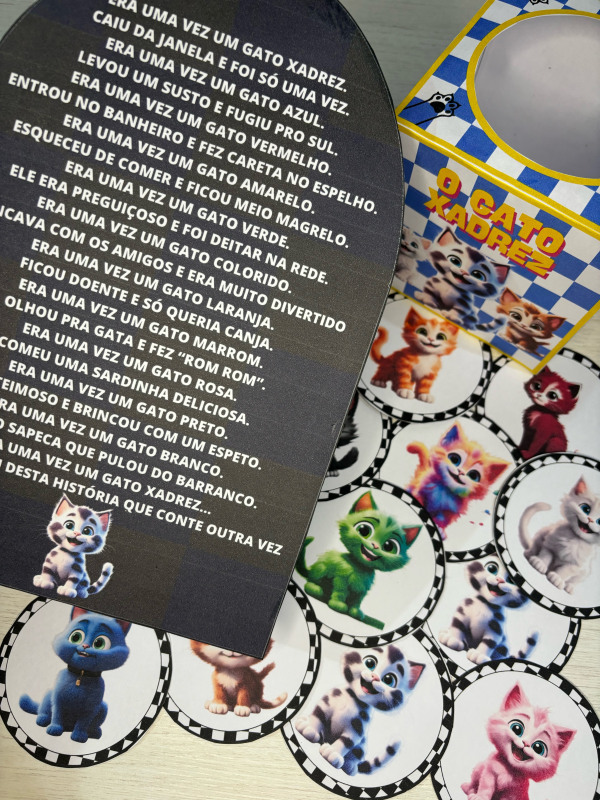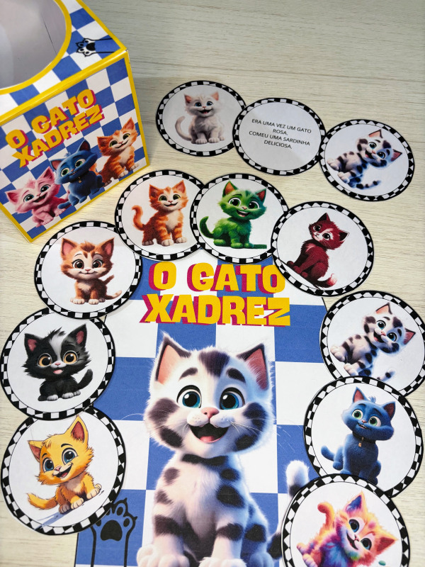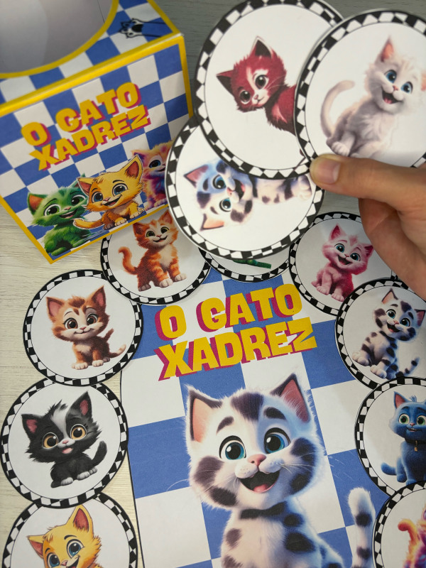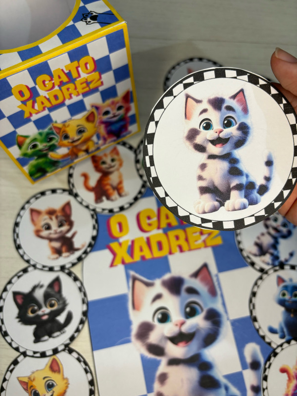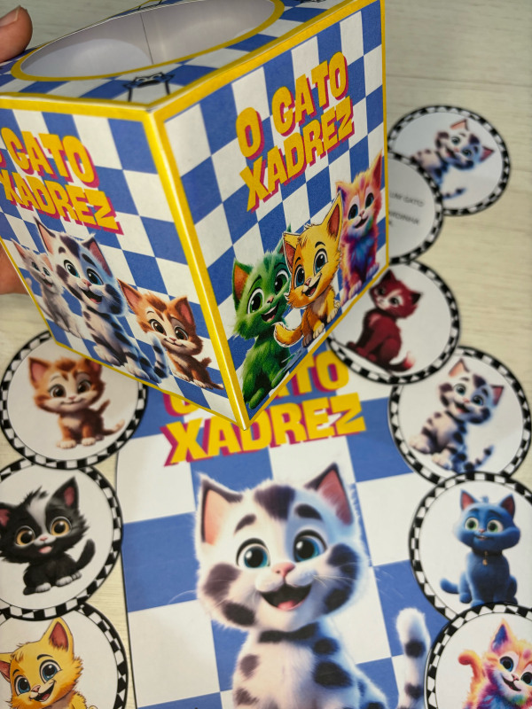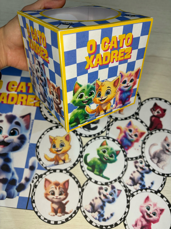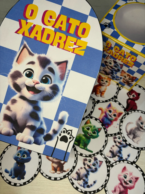 Esse lindo recurso acompanha caixinha temática do gato Xadrez