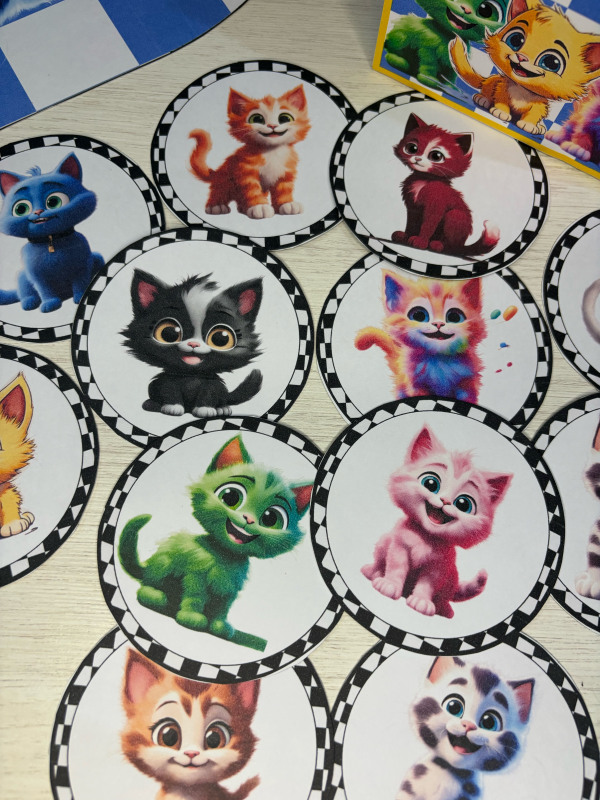 13 fichas de todos os gatinhos da história com o verso atrás
