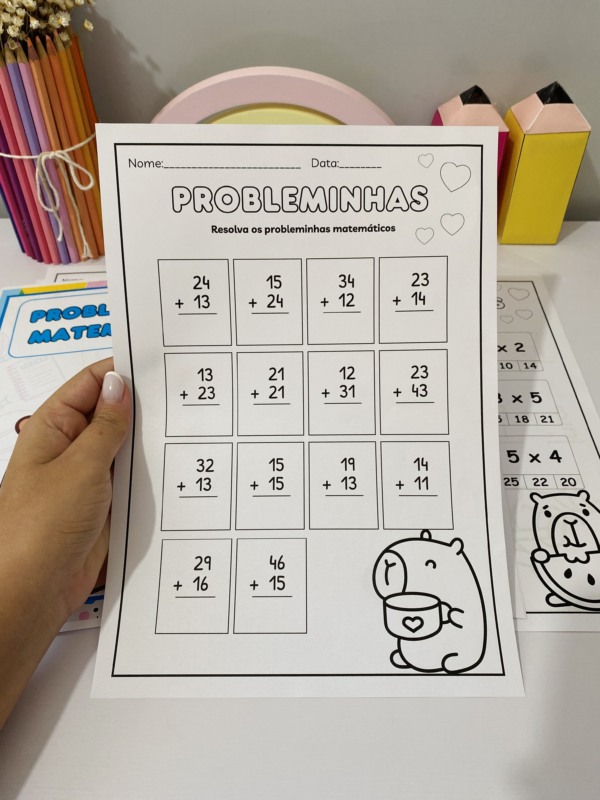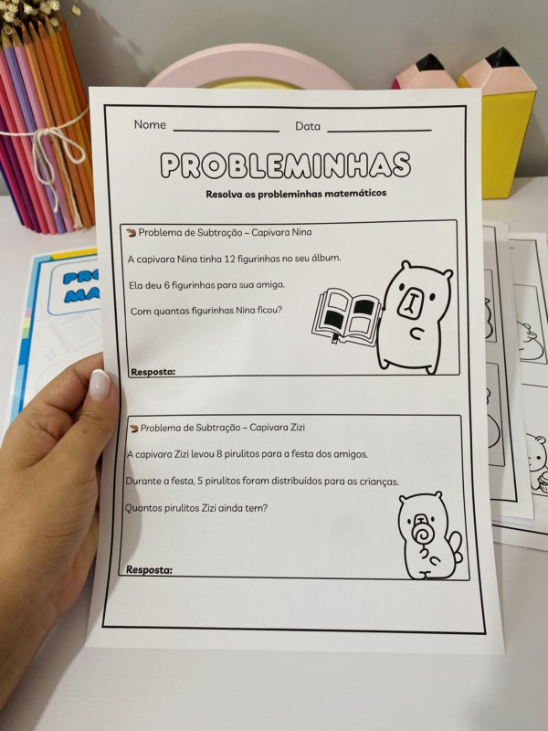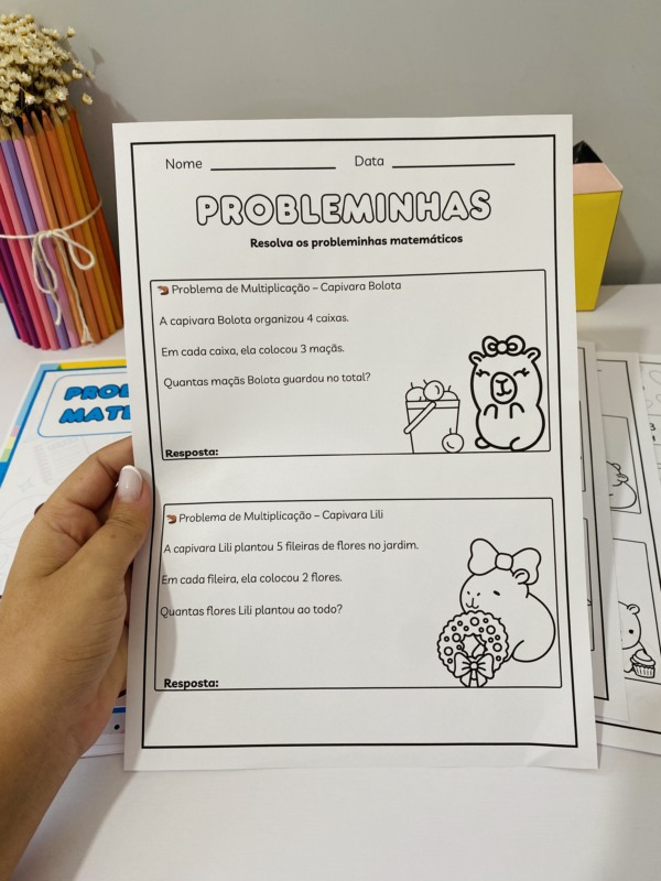 Um arquivo super divertido com 14 páginas recheadas de problemas matemáticos contextualizados, usando personagens fofos de capivaras para encantar os alunos!